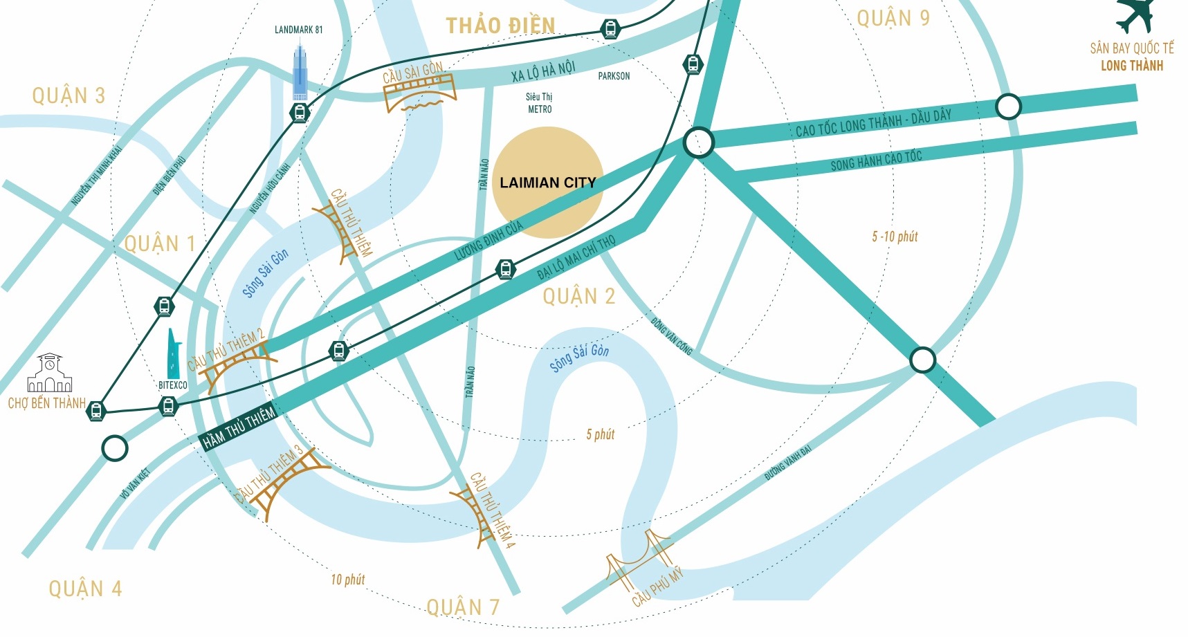 Sự quy hoạch của dự án Laimian City quận 2 khá bài bản và chi tiết không kém phần các đô thị lớn, sầm uất nằm xung quanh và cùng phân khúc như: KĐT Thủ Thiêm; KĐT Nam Rạch Chiếc; Khu dân cư Thảo Điền; Thạch Mỹ Lợi;…